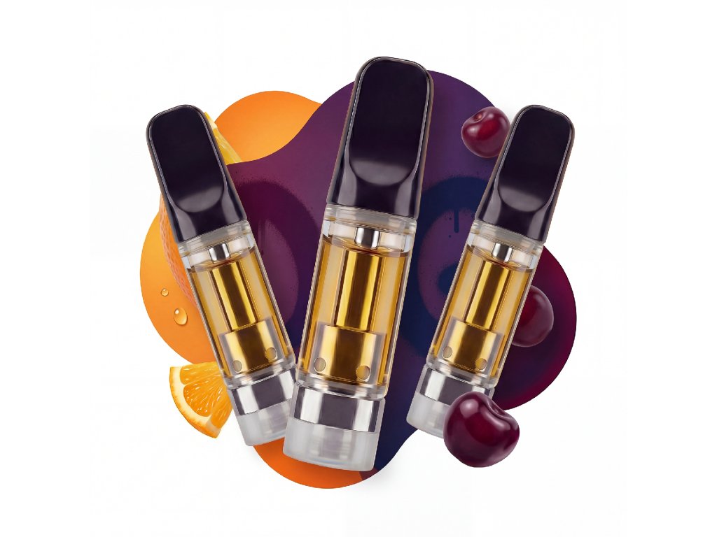 Akční set za bezkonkurenční cenu, 1ml cartridge s příchutí ovocných modelů Agent Orange, OG Kush a Cherry Kush.