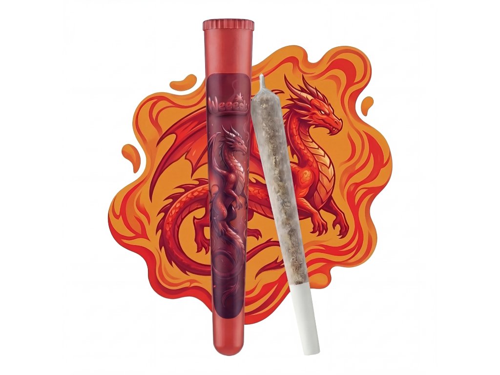 PRE-ROLL naplněn směsí trymu z květů s barevně červeným nádechem